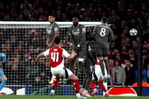 体育资讯4月9日讯 阿森纳vs皇马下半场,赖斯任意球兜出超级弧线,皮球飞行过程中,偏出右门柱约4-5个球位!